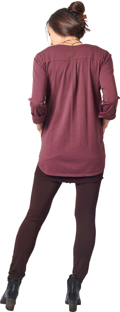 Sourced from old-world European artists’ smock-like tunics, featuring a front V-neck placket and roomy pockets. Re-imagined in a silky smooth cotton knit, roomy enough to be a great layering item styled with front and back men’s tailored shirt hem. Pair it with leggings, jeans, or skirts – it’s an iconic casual look – a statement piece that is understated with simple sophisticated style.