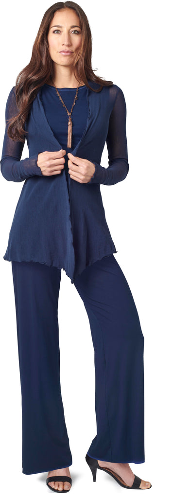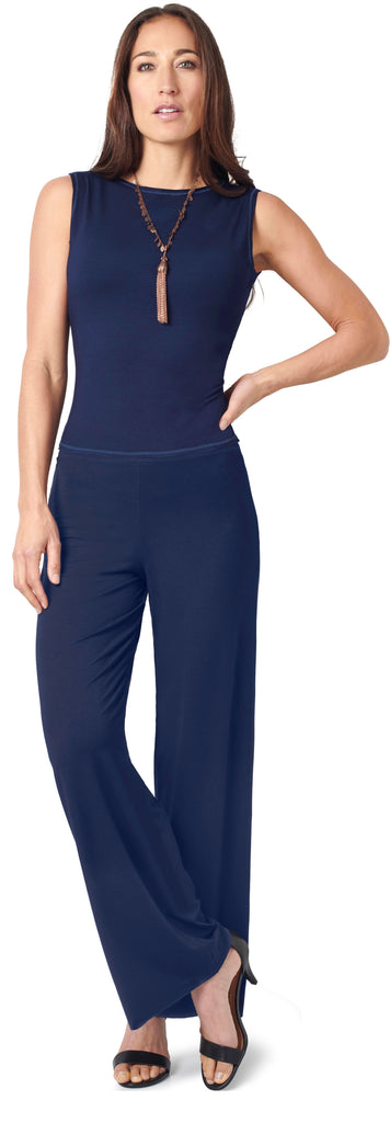 Our rayon pant is made from our Rayon/Lycra blend, and is fitted in the waist and hips, then continues straight to a flattering straight leg. A looser fitting slack that is a basic pant for all seasons.